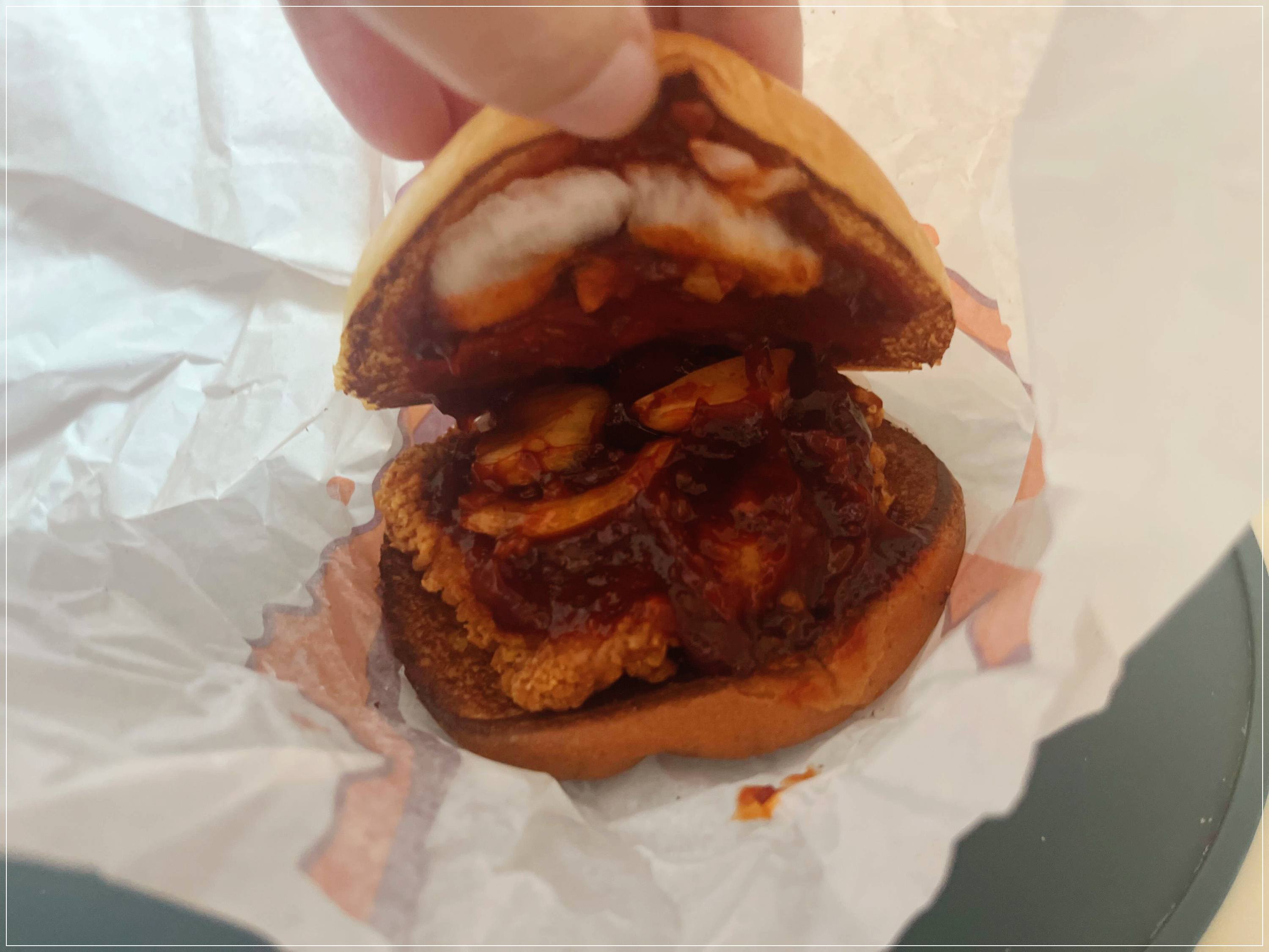 포장을 뜯어보니 기존 맥크리스피 버거와 비슷한 아담한 사이즈의 버거가 등장합니다.
